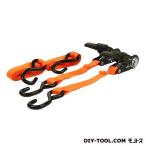 用途:バイク・農機具・小型機械の運搬時の固定|ベルト幅:25mm、全長:2m(固定側0.2m/調整側1.8m)|最大使用力:0.75kn(76kg)、破断荷重:3kn(305kg)|バックルの種類:カムバックル、端末の仕様:オープンフック|ベルトカラー:ブラック||カムバックル式のオープンフックで素早く・簡単に張り調整が可能|<用途>|バイク・農機具・小型機械の運搬時の固定|<・・・