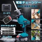 送料無料 小型チェンソー 充電式 専用ケース ブレード4本 レシプロソー 電動チェーンソー ミニチェーンソー バッテリー付き マキタ バッテリー併用